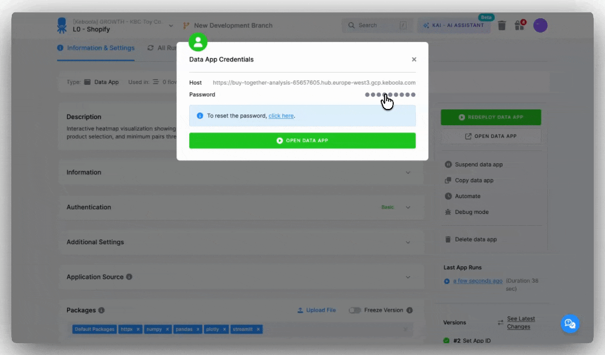 App deployment means taking your app from code to a live, working URL that anyone can access. You don't need to worry about servers, hosting, or technical configuration, Keboola handles all of it.