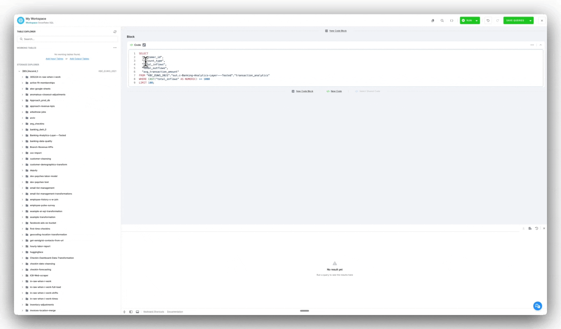Navigate to Workspaces → SQL Editor in your Keboola project.